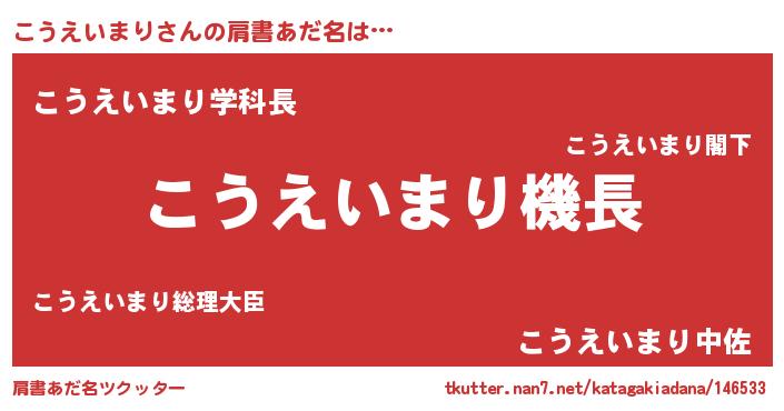 | 男性向けラノベタイトル風あだ名 | 『うちのこうえいまりが世界を掌握している!』 |
