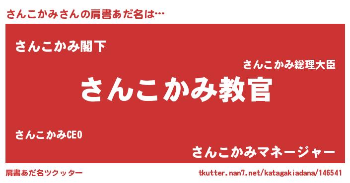 | 男性向けラノベタイトル風あだ名 | 『この素晴らしい世界にさんこかみを!』 |