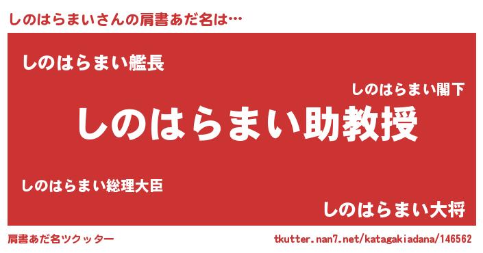 | 男性向けラノベタイトル風あだ名 | 『ノーゲーム・ノーシノハラマイ』 |