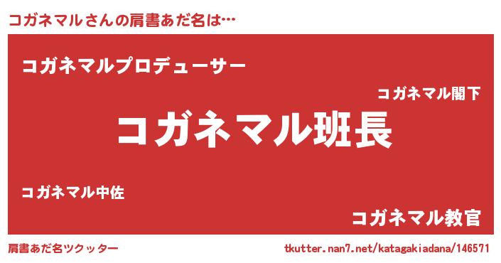 | 意味不明あだ名 | 『とにかく怪しいコガネマル』 |