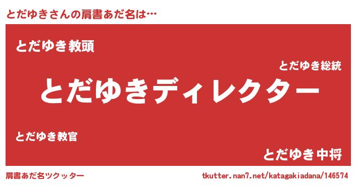 | 意味不明あだ名 | 『永久保存とだゆき』『自称とだゆき』 |