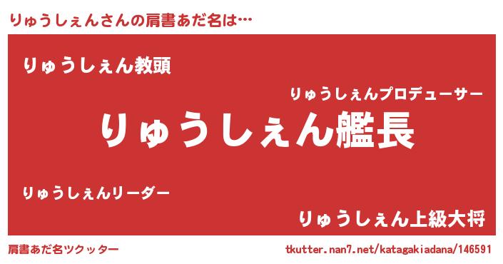 | ヘコむあだ名 | 『りゅうしぇん(苦笑)』『りゅ太郎』 |