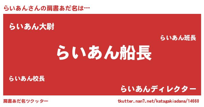 | ヘコむあだ名 | 『らいを』『らいあん(爆)』 |