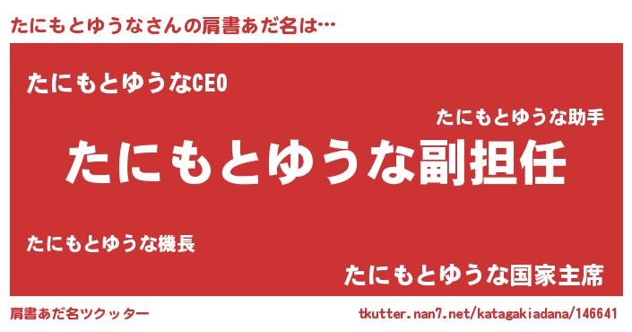| ヒーロー風カッコイイあだ名 | 『ネオタニモトユウナ』『仮面タニダー』 |