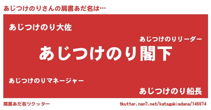 | 意味不明あだ名 | 『自称あじつけのり』 |