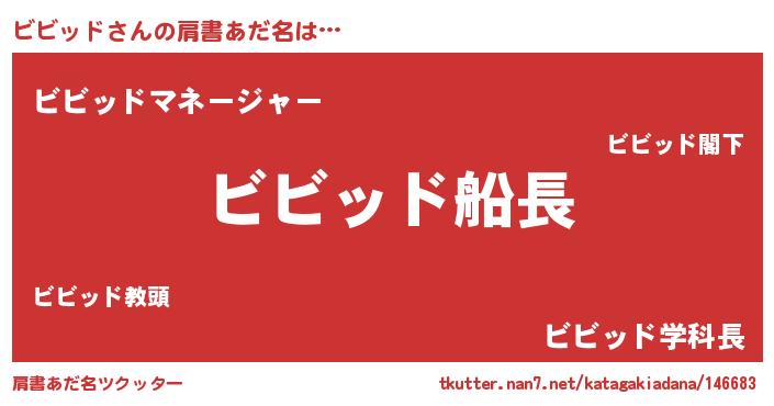 | ヒーロー風カッコイイあだ名 | 『慈愛の使者ビビッド』『ネオビビッド』 |