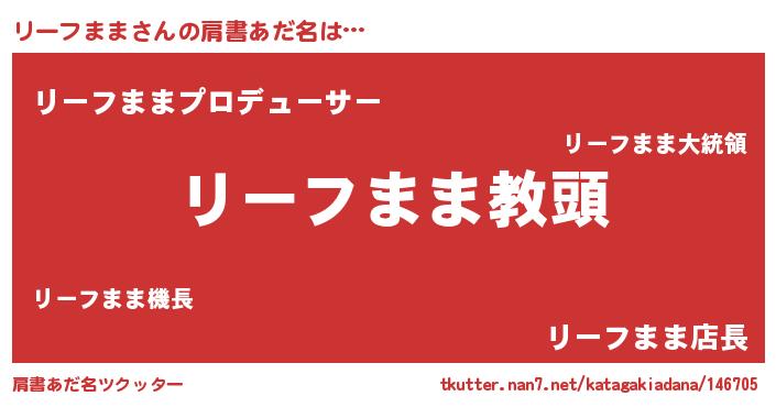 | ヘコむあだ名 | 『リーフまま(笑)』『リーっふぃ~』 |