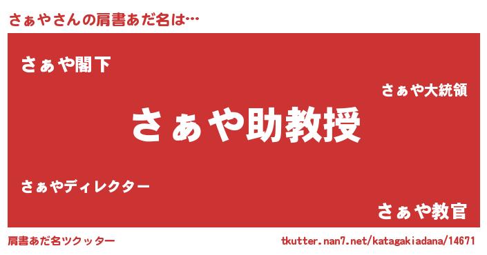 | 男性向けラノベタイトル風あだ名 | 『ノーゲーム・ノーサァヤ』 |