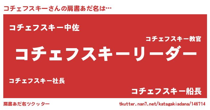 | 女子向けラノベタイトル風あだ名 | 『コチェフスキーは平凡を望む』 |