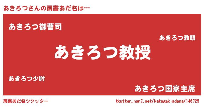 | ヒーロー風カッコイイあだ名 | 『慈愛の使者あきろつ』『ネオアキロツ』 |