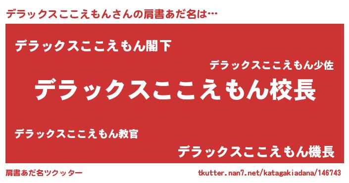 | 男性向けラノベタイトル風あだ名 | 『デラックスここえもんという概念が存在しない退屈な世界 』 |