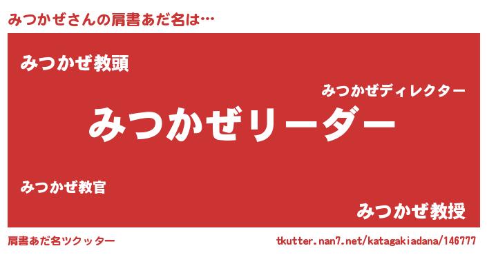 | ヒーロー風カッコイイあだ名 | 『魔戒騎士ミツ』『ネオミツカゼ』 |