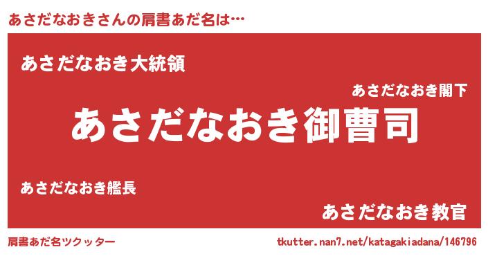 | 女子向けラノベタイトル風あだ名 | 『(仮)あさだなおきのやんごとなき事情』 |