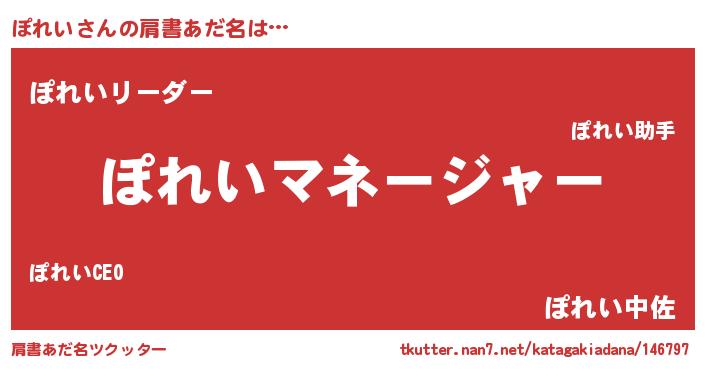 | 男性向けラノベタイトル風あだ名 | 『はたらくぽれいさま!』『ぽれいの憂鬱』 |