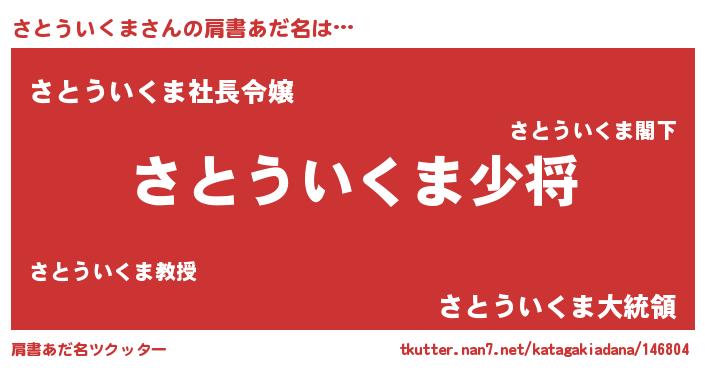 | ヒーロー風カッコイイあだ名 | 『スーパーサトウイクマ』『炎刃騎士サト』 |