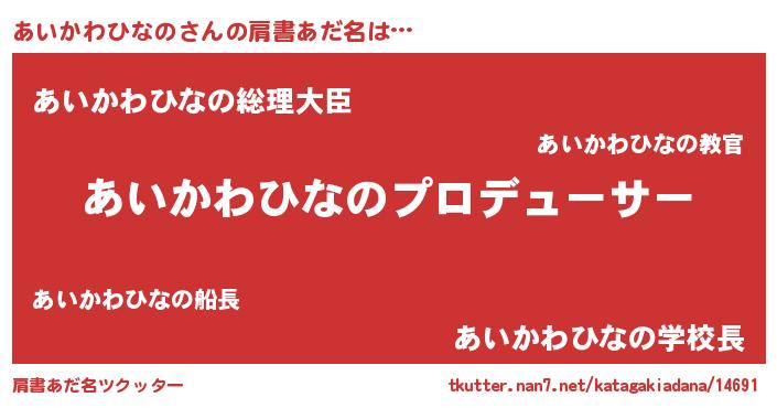 | 男性向けラノベタイトル風あだ名 | 『はたらくあいかわひなのさま!』 |