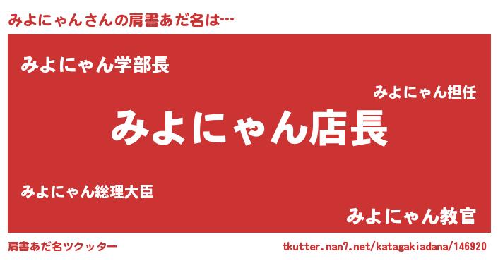 | 男性向けラノベタイトル風あだ名 | 『みよにゃんの憂鬱』 |