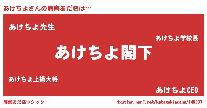 | 意味不明あだ名 | 『自称あけちよ』『永久保存あけちよ』 |