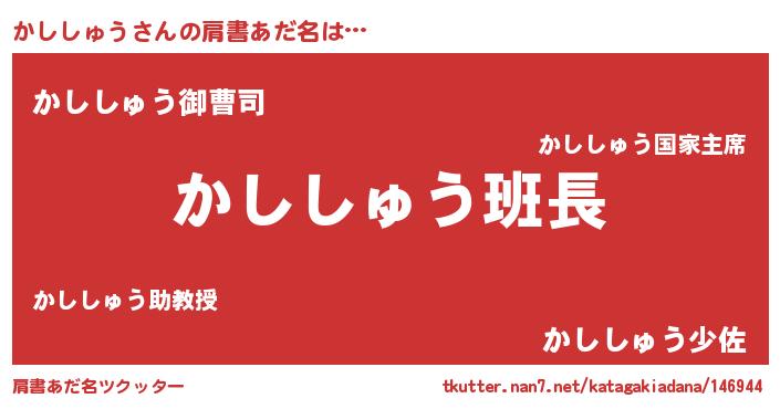 | ヒーロー風カッコイイあだ名 | 『暗黒騎士カシ』『スーパーカシシュウ』 |