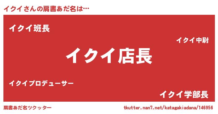 | 男性向けラノベタイトル風あだ名 | 『イクイの憂鬱』『はたらくイクイさま!』 |