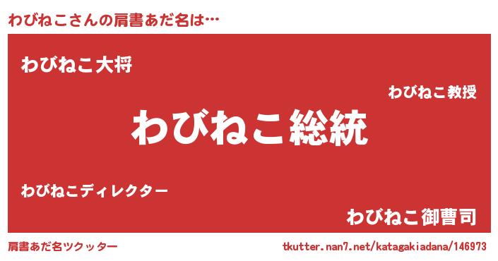 | 女子向けラノベタイトル風あだ名 | 『わびねこなんてお断りですっ。』 |