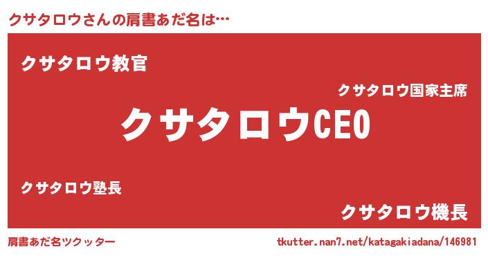 | 男性向けラノベタイトル風あだ名 | 『クサタロウの憂鬱』 |
