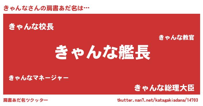 | 男性向けラノベタイトル風あだ名 | 『緋弾のキャンナ』『魔弾の王ときゃんな』 |