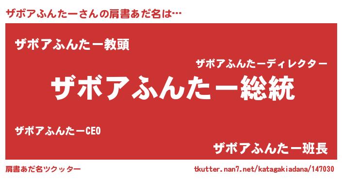 | 女子向けラノベタイトル風あだ名 | 『ザボアふんたーなんてお断りですっ。』 |