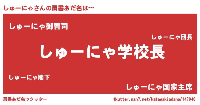 | ヒーロー風カッコイイあだ名 | 『正義の使者しゅーにゃ』『魔戒騎士シュ』 |