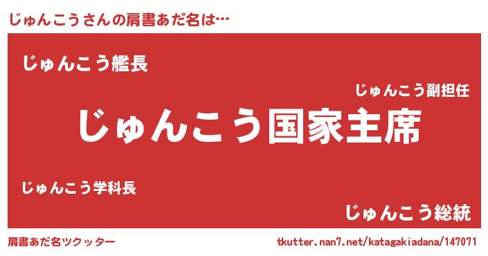 | 女子向けラノベタイトル風あだ名 | 『じゅんこうの雑貨屋さん』 |