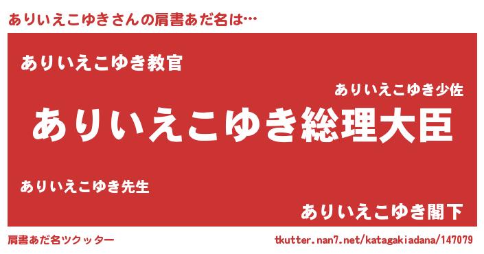 | 女子向けラノベタイトル風あだ名 | 『ありいえこゆきの雑貨屋さん』 |