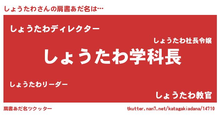 | ヒーロー風カッコイイあだ名 | 『慈愛の使者しょうたわ』『仮面ショダー』 |