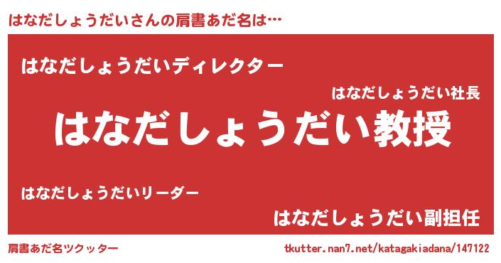 | ヘコむあだ名 | 『はなだしょうだい(小並感)』『はなにゅー』 |