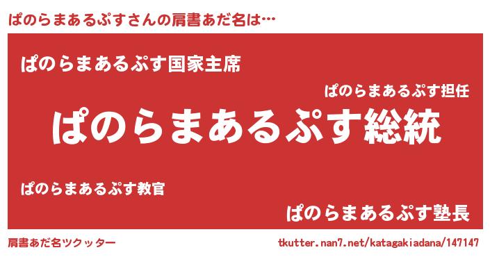 | 女子向けラノベタイトル風あだ名 | 『ぱのらまあるぷすストレイドッグス』 |