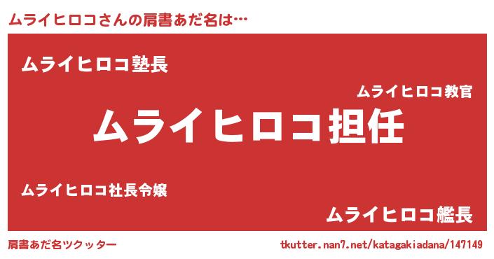 | ヘコむあだ名 | 『ムライヒロコ(苦笑)』『ムラっぺ』 |
