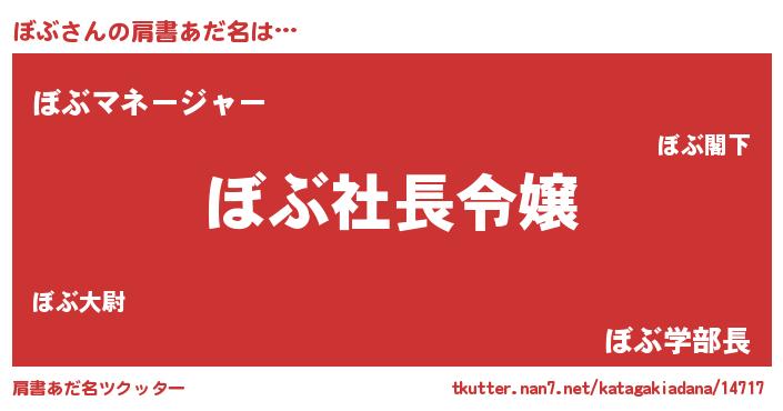 | 胡散臭い通販商品みたいなあだ名 | 『億万長者になれる霊験あらたかなお札…その名も「ぼぶ」』 |