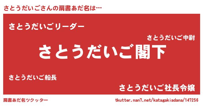 | 意味不明あだ名 | 『自称さとうだいご』 |