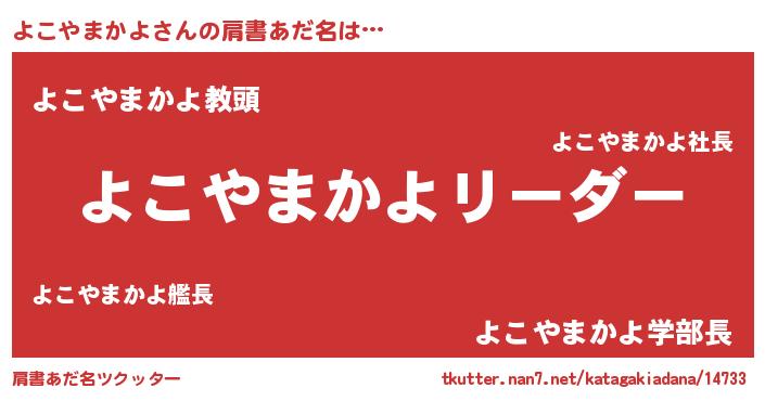 | 男性向けラノベタイトル風あだ名 | 『よこやまかよの嫁は女の子じゃないと思った?』 |