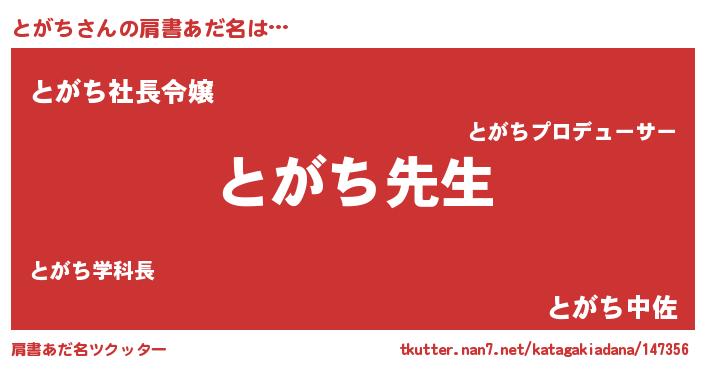 | ヘコむあだ名 | 『とがち(笑)』『とがもー』『とがを』 |