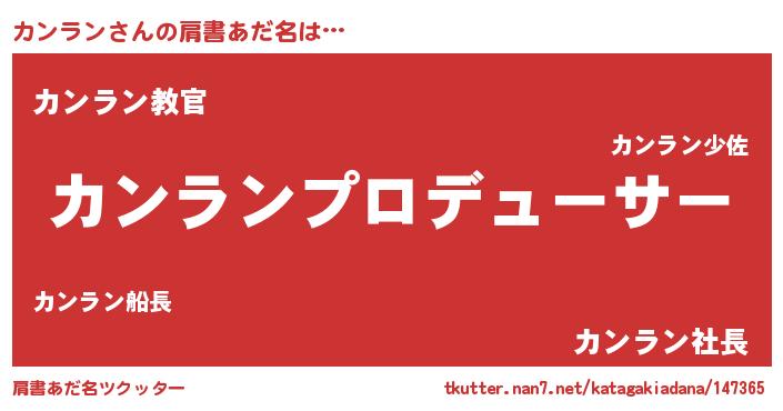 | ヒーロー風カッコイイあだ名 | 『仮面カンダー』『スーパーカンラン』 |