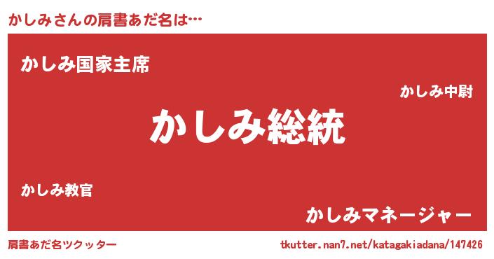 | 男性向けラノベタイトル風あだ名 | 『Re:かしみから始める異世界生活』 |
