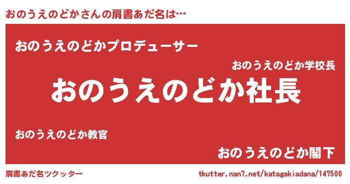 | 男性向けラノベタイトル風あだ名 | 『オノウエノドカアートオンライン』 |