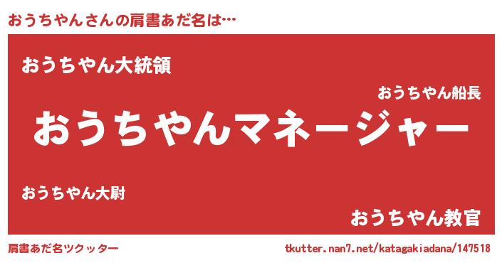 | 男性向けラノベタイトル風あだ名 | 『おうちやんに滅ぼされるだけの簡単なお仕事です』 |