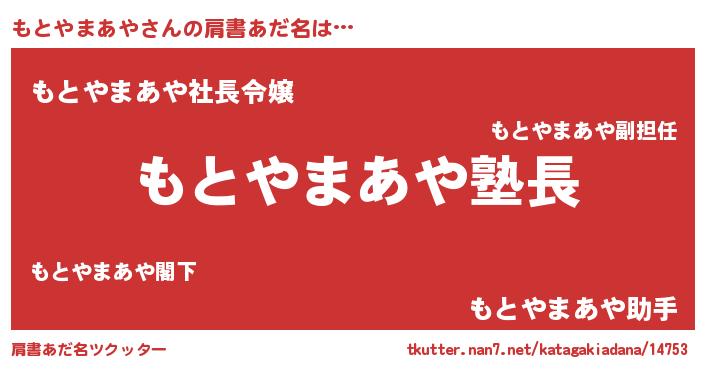 | 女子向けラノベタイトル風あだ名 | 『もとやまあやは平凡を望む』 |
