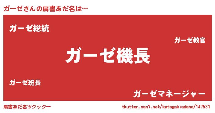 | 男性向けラノベタイトル風あだ名 | 『緋弾のガーゼ』『魔弾の王とガーゼ』 |