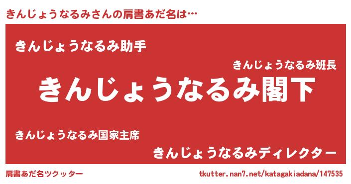 | 意味不明あだ名 | 『自称きんじょうなるみ』 |