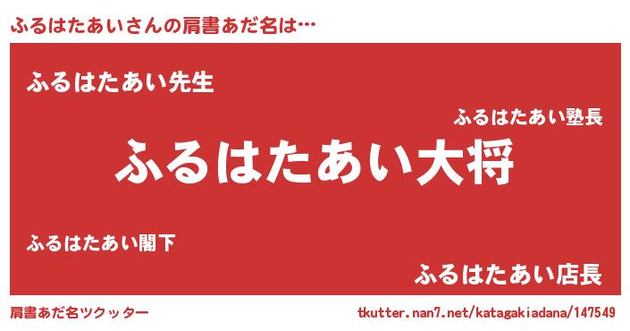 | ヘコむあだ名 | 『ふるはたあい(遠い目)』『ふるにー』 |