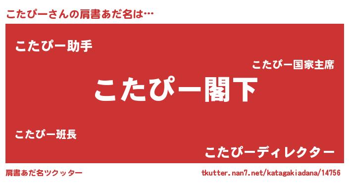 | 女子向けラノベタイトル風あだ名 | 『闇のこたぴー』『こたぴー恋絵巻』 |