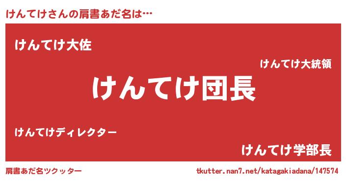 | ポケモン風あだ名 | 『ヒケンテケ』『ケンキング』 |
