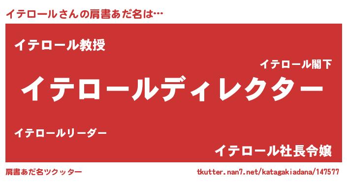 | 男性向けラノベタイトル風あだ名 | 『はたらくイテロールさま!』 |
